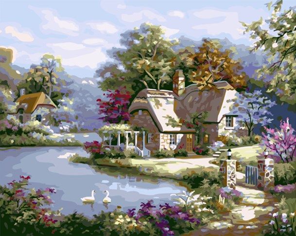 В набор входит:1) холст на подрамнике с нанесенной пронумерованной схемой будущей картины,2) кисти (3 штуки разной толщины),3) акриловые пронумерованные краски,4) крепления для готовой картины,5) контрольный лист - схема